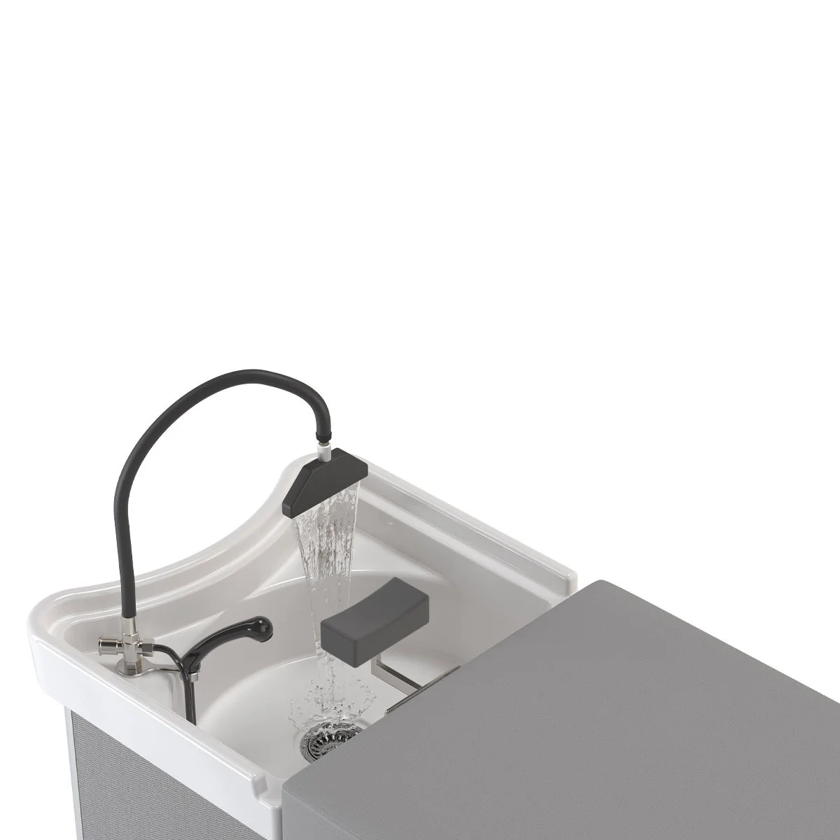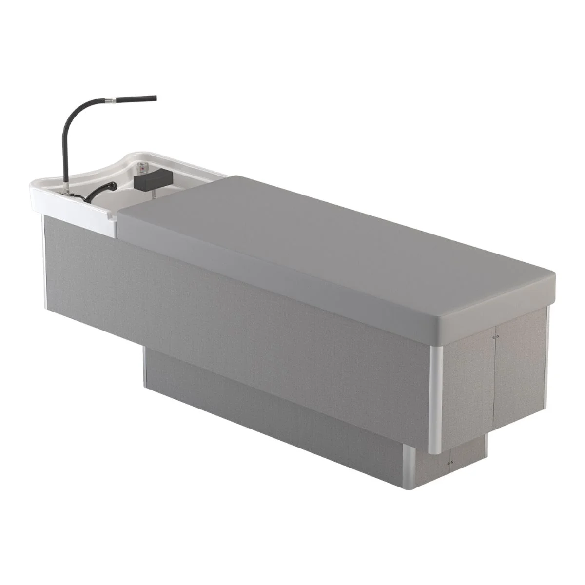 The spacious, ergonomic basin includes a removable headrest to maximize client comfort during treatments. The dual elastic mattress provides exceptional comfort by conforming to each body.